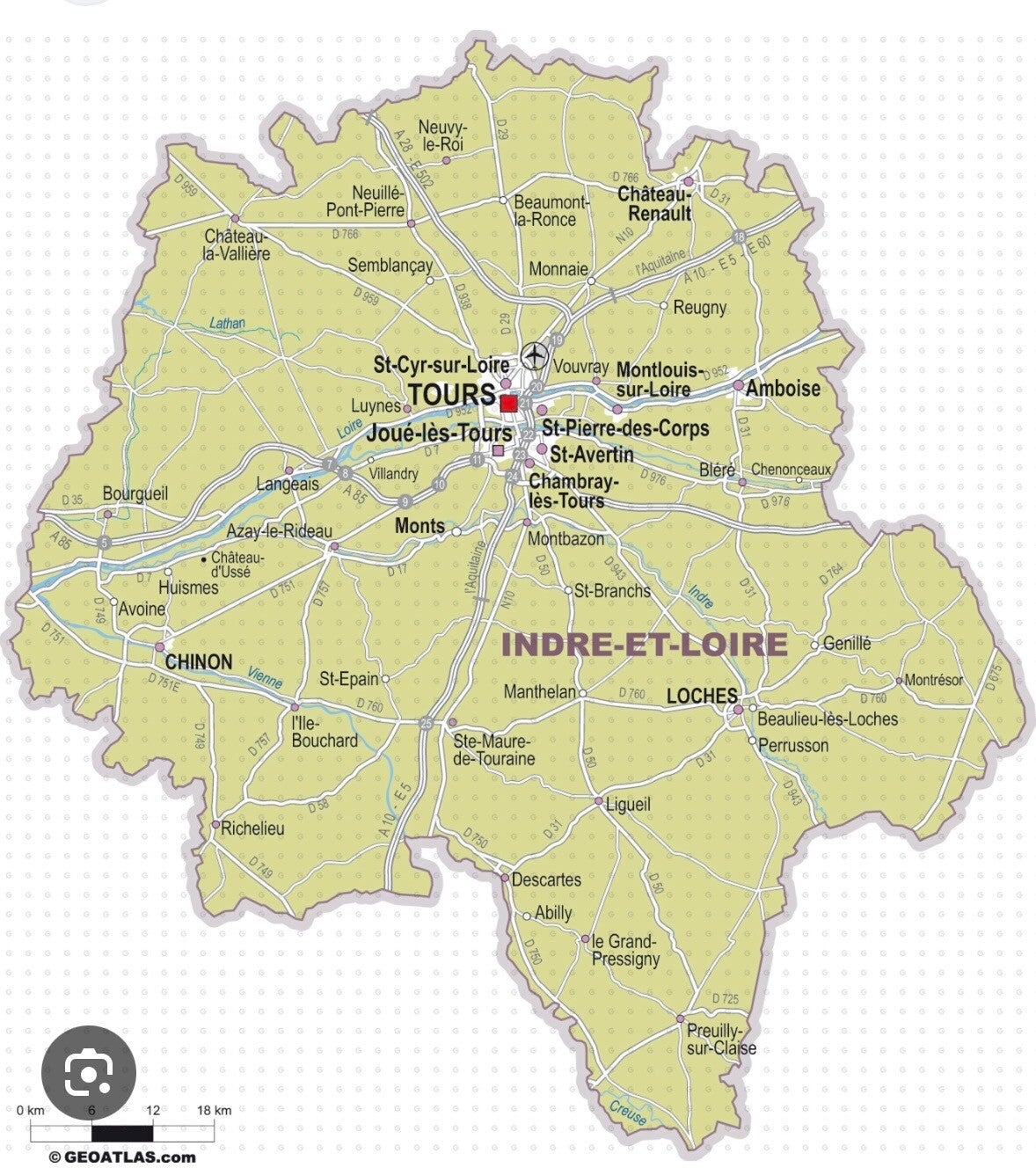 Chinon, Loches, Azay-le-Rideau, Langeais, Bourgueil, Richelieu, Descartes, Sainte-Maure-de-Touraine.